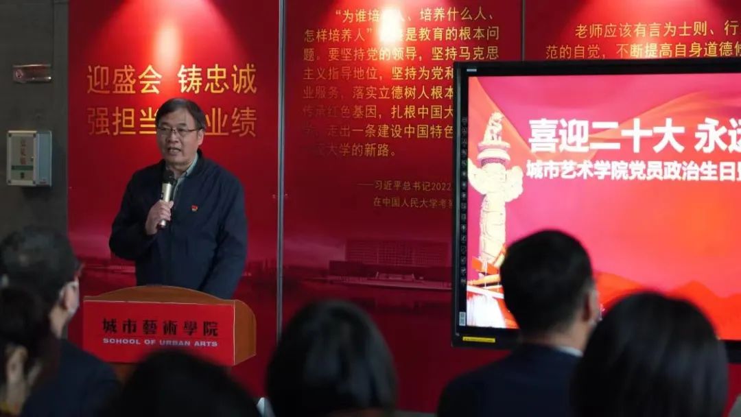 为激励广大教职工扎实工作、开拓进取,努力争做新时代“经师”和“人师”的统一者,以实际行动迎接党的二十大胜利召开,10月13日,城市艺术学院举办了“喜迎二十大,永远跟党走”党员政治生日暨工会会员活动。出席本次活动的有学院党委书记王建国、院长张小开、党委副书记陈文科、副院长殷陈君、王璞和全体教职工参加了活动,活动由王璞主持。